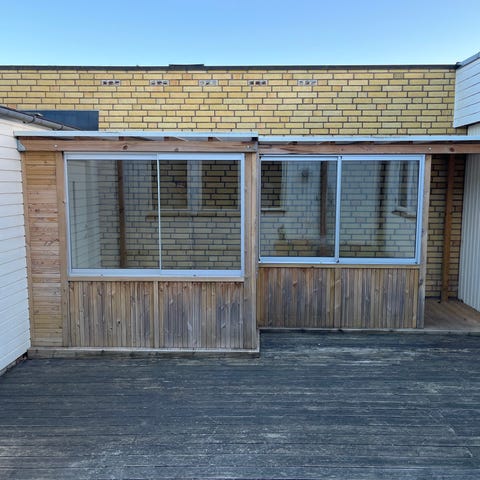 Inglasning uterum skjutdörrar glaspartier röd aluminium