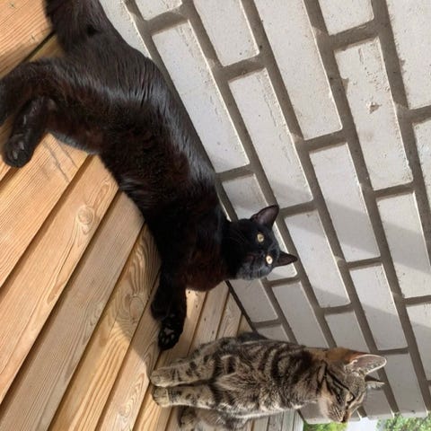 Han trivs med andra katter och vi ser gärna ett hem med 1–2 snälla, lekfulla honkatter. Han leker fint med våra yngre katter och uppskattar sällskap. Han är även van vid hund, så länge hunden är trygg med katter och inte jagar eller skäller.🐶