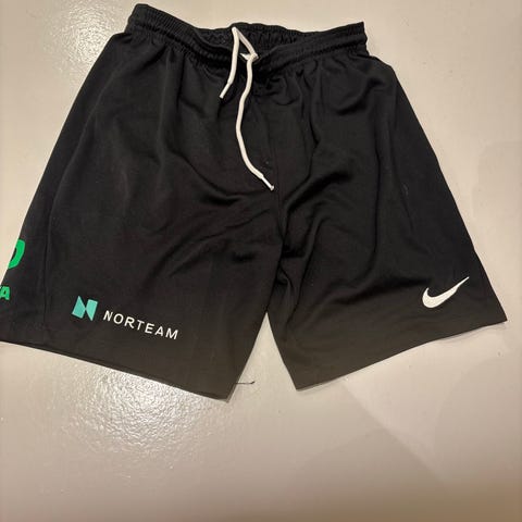 Alvik basketshorts för barn i storlek 134–140. Shortsen är gröna med vitt innerfoder i meshmaterial och har resår i midjan. De har ett runt märke framtill i gult och grönt. Passar för basketträning, annan inomhusidrott eller fritidsaktiviteter. Kan skickas med post!