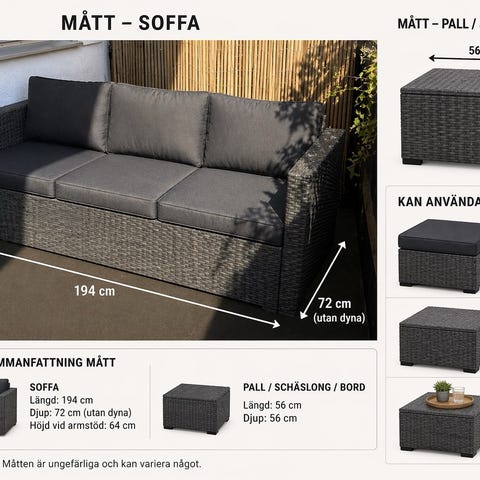 Ikea SOLLERÖN modulsoffa 3-sits med dynor och 2 pallar