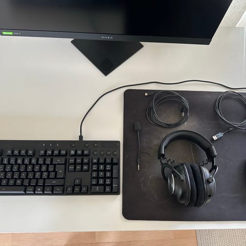 240 Hz skärm, apex tkl 3 pro keyboard och logitech lightspeed mus