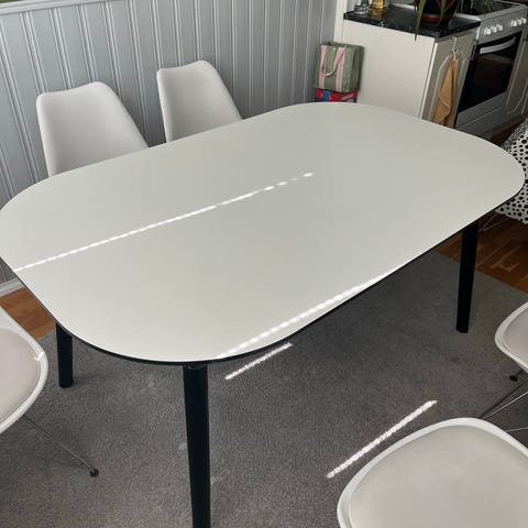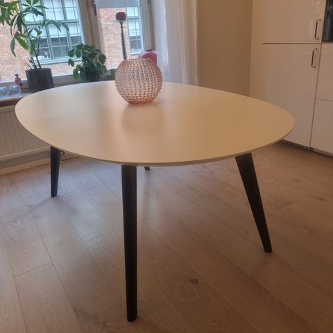 Vitt, smart, stabilt och fantastiskt praktiskt matsalsbord designat av Karim Rashid, amerikansk designer som vunnit Red Dot award.