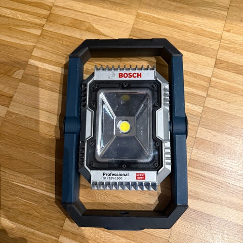 Bosch Bosch Professional GCL 2-50G korslaser med grön laserlinje. Lasern är monterad på ett justerbart fäste som kan användas för att fästa verktyget på olika underlag. Verktyget är avsett för mät- och uppriktningsarbeten inomhus, till exempel vid montering av hyllor, kakel eller andra bygg- och renoveringsarbeten där raka linjer krävs.