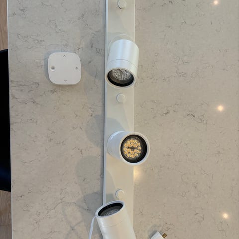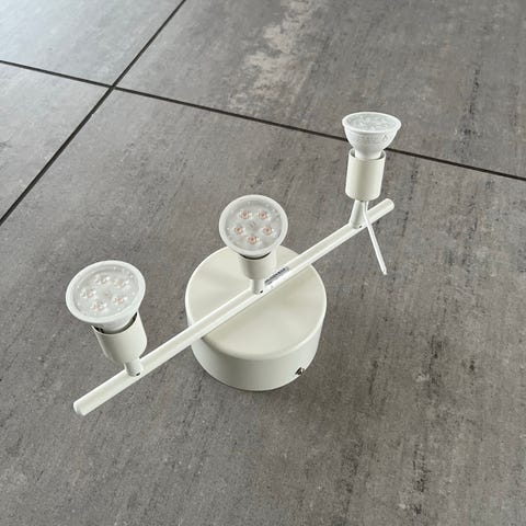 Säljer två stycken vita spotlights med flera riktbara lampor. Perfekta för hall, kök eller vardagsrum.