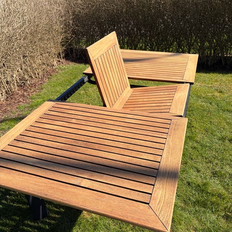Om träskivan behandlas med teakolja så kommer bordet bli som nytt.