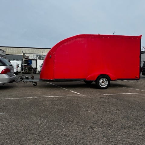 Sitter inredning i aluminium i släpet. Finns mycket att fästa i om man vill bygga någon typ av inredning.