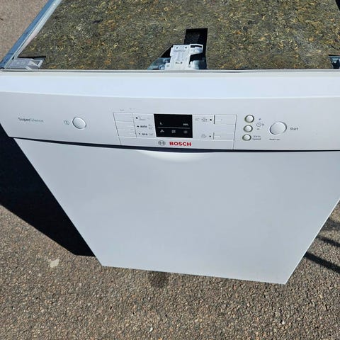 Bosch underbyggd diskmaskin i vit färg. Modellen är avsedd att monteras under bänkskiva i kök. Diskmaskinen har frontpanel med vred och knappar för val av program. Passar för standardköksmått och ansluts till vatten och avlopp enligt tillverkarens anvisningar. Lämplig för normal hushållsdiskning i köksmiljö.