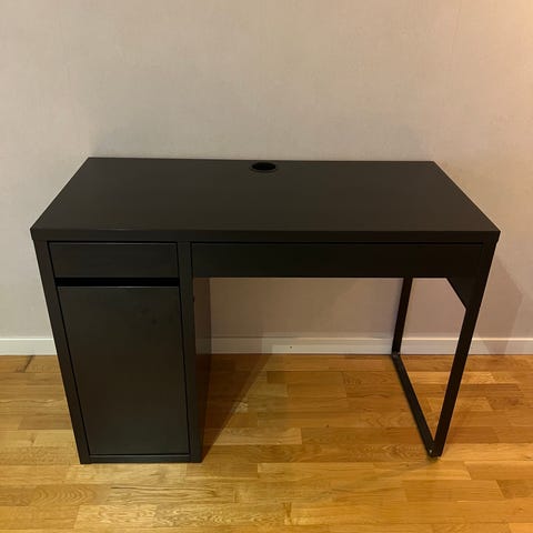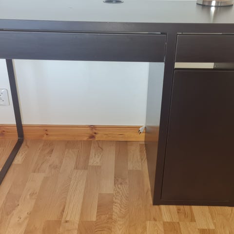 Ikea desk in brown color having size 150x50. There are some scratches in front of the drawer but otherwise it’s pretty good. Pickup in Farsta.