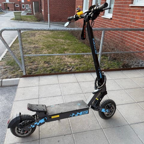 Tjena! Säljer min Kukirin G2 som är i riktigt fint skick och fungerar precis som den ska. Den har gått cirka 700 km och har tagits väl hand om under hela tiden. Nyligen har jag bytt bakdäcket till ett helt nytt och ett extra framdäck följer också med, vilket är ett stort plus. Alla gummidetaljer är dessutom nymålade för att ge den en fräsch och mer original känsla igen. Öppen för byen samt är proset inte inristat i sten!😁