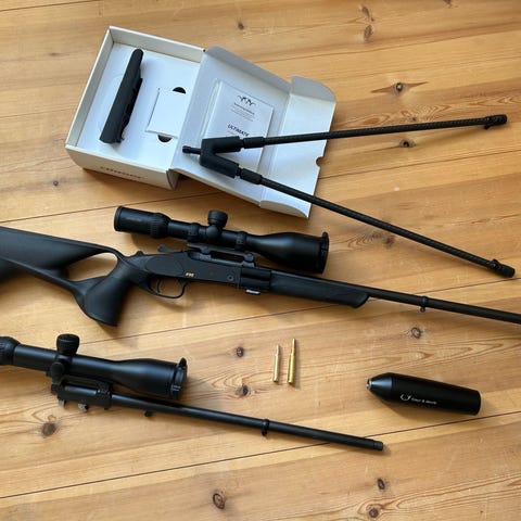 Finns märken på lådan efter Blaser-fästen men annars mer eller mindre nyskick