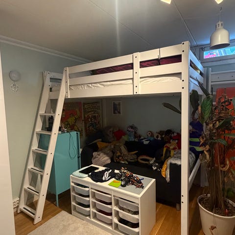 NY småstad loftsäng 2 st en turkos ocke en lila dörrar knoppar grattis byta
