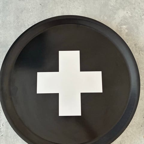 Oanvänd bricka som heter Cross och designern är Pia Wallén. Brickan har ett svart plus på vit botten. Björkträ överdraget med laminat. Tillverkad i Sverige. Just detta motiv har utgått ur Pia Wallén brickkollektion.