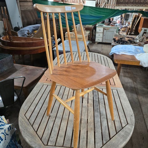 Klassisk pinnstol med hög rygg och bred sits.