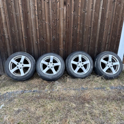 Säljes en uppsättning sommardäck som suttit på en Subaru Legacy.