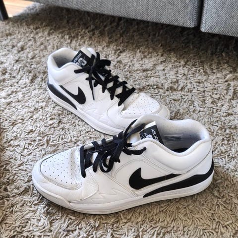 Nike sneakers i storlek 46. Låga sneakers i blått och vitt med snörning. Ovandel i syntet- och textilmaterial med perforerad tådel. Gummisula med mönstrad undersida för grepp. Passar till vardagsbruk och fritidsaktiviteter.