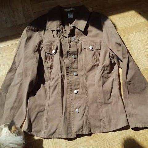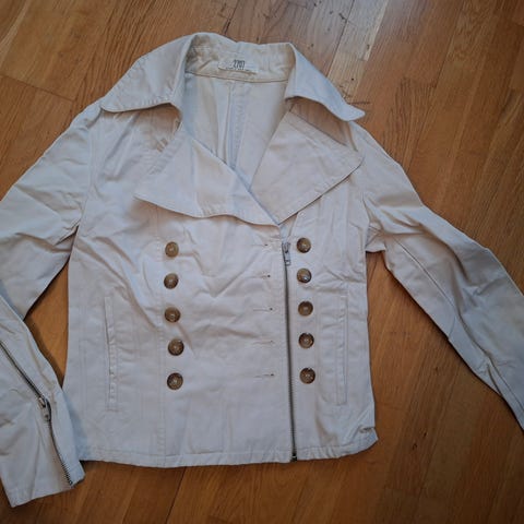 A linjeskuren jacka med knappar/liten krage, bomull, fickor, veck i ryggen för skön rymd, beige, stlk 38, kimonoärm,