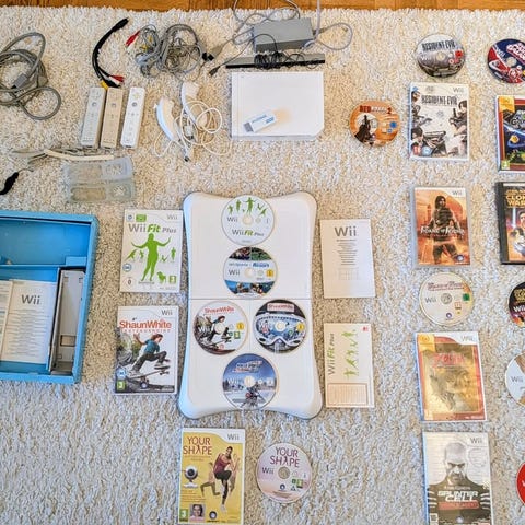 Nu är det dags att sälja vår Nintendo Wii-konsol med 16 spel och andra tillbehör.