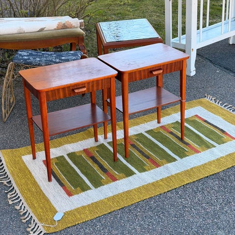 Klassiskt snygga sängbord i teak. Säljes som par. Kan skickas mot fraktkostnad.