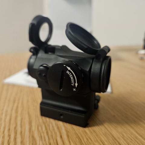 Kommer med flip up lenscaps och killflash och orginal höjd mount.