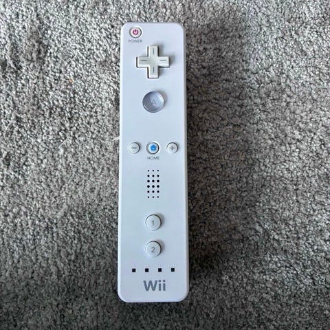 Nintendo Wii fjärrkontroll i svart färg. Standardkontroll till Nintendo Wii med handledsrem. Passar till spel och navigering i Wii-menyer. Drivs med batterier som sätts in på baksidan av kontrollen.