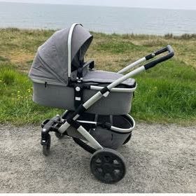 Joolz barnvagn i grått tyg med liggdel och sittdel. Vagnen har justerbart handtag, varukorg under chassit och svängbara framhjul. Liggdelen har sufflett och vadderad insida. Sittdelen har sele, frontbygel och sufflett. Passar för vardagsbruk och promenader i stadsmiljö och på jämnare underlag.