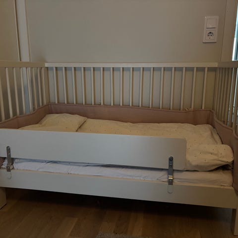 IKEA spjälsäng, madrass spjälskydd m.m.