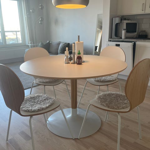 Säljer vårt fina matbord Rowico Filippa då bordet inte passar vårt nya boende. Bordet har alltid haft duk, (se sista bild) därav är bordet som helt nytt. Inga fläckar eller märken. Med två iläggsskivor får bordet en maxlängd på 240 cm