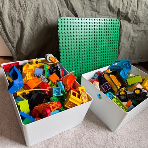 Blandat Brio och Ikea tågbana, med många delar, tillbehör och tåg.