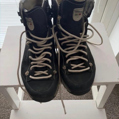 Garmont vandringskängor i stl 38 med snörning och grov sula. Grå och svarta med röda detaljer och förstärkta partier runt tå och häl.