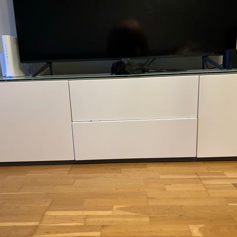 Överskiva och lådor i massivt trä, dörrem behöver justeras efter flytt (kan användas utan skåpsdörr), annars i fint skick. Mått 120 cm bred, 50 cm djup, 58 cm hög. Hämtas på Kungsholmen