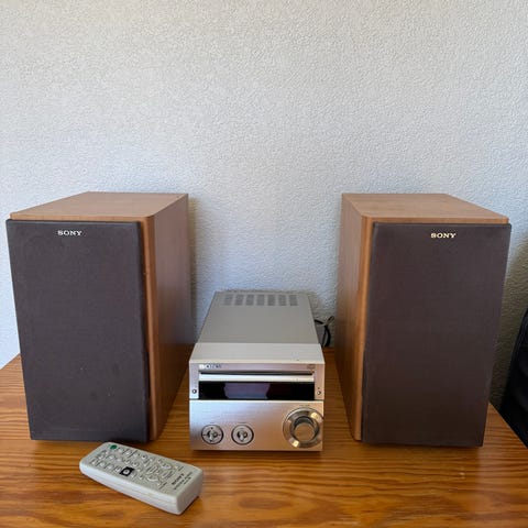 Sony mini stereo, med radio och cd-spelare, cd-spelaren är det nåt fel på, men kan säkert lagas av kunnig person