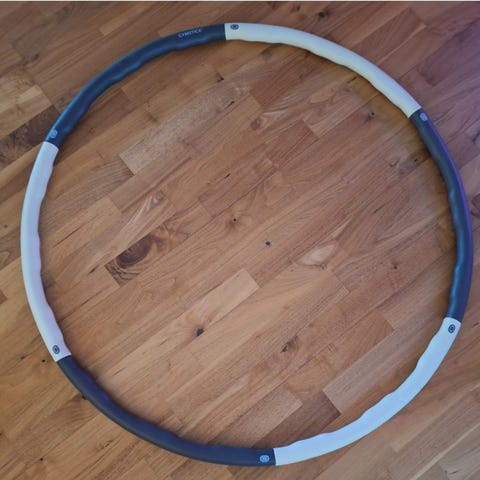 Träningsrockring i grått och rött med vågig form. Bra för enkel hemmaträning - lätt att plocka fram när du vill köra ett pass!