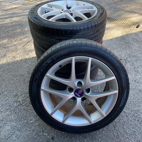 Saab alufälgar i mycket bra skick, ngt skav finns på någon fälg.