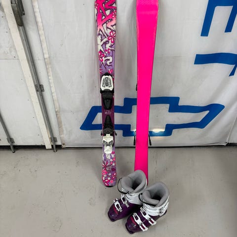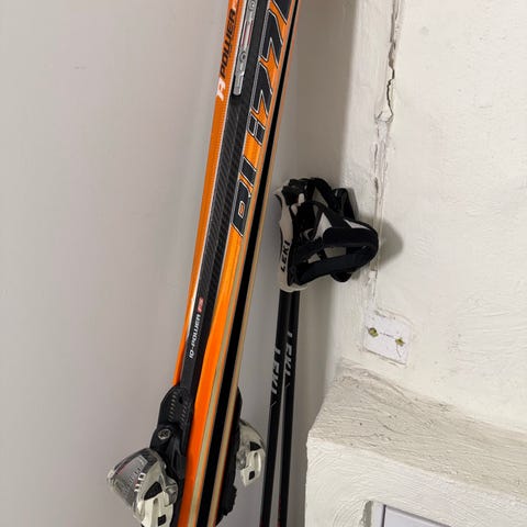 Säljer ett par K2 twintip-skidor med Marker-bindningar.