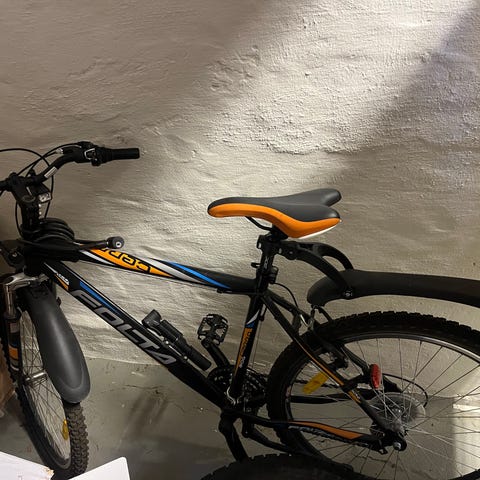 Tuff pojk-mountainbike av märket Sharky. 17" ram och 26" mountainbikedäck. 21-växlad (3 fram, 7 bak) Shimano växel. Växel indikator på styret. Skivbromsar på fram- och bak-hjul. Dämpad framgaffel. Ringklocka och reflexer(fram, bak och sida) medföljer. Stöd och stänkskydd bak. Mycket lite använd.