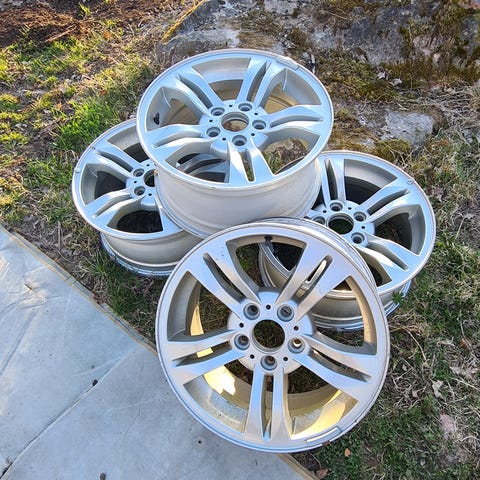 Säljer dessa fälgar som blivit över, sen bilen sålts . Nypris för dessa fälgar är 14 700 kr enligt uppgift från BMW reservdelar, så den som köper gör ett riktigt klipp!