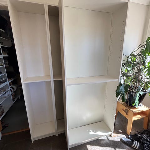 Har 2st kompletta Marbodal garderober över med tillhörande vita luckor, gångjärn, hyllor och klädstång.