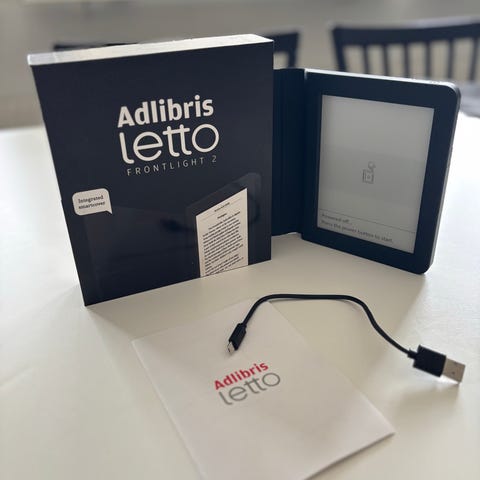 Följer med: Läsplatta, laddkabel, manual, fodral och kartong.