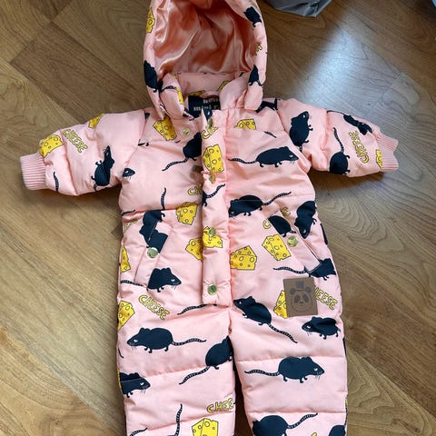 The North Face overall i polyester, stl 86, med flerfärgat mönster och huva. Lång dragkedja framtill och resår vid ärm- och benslut.