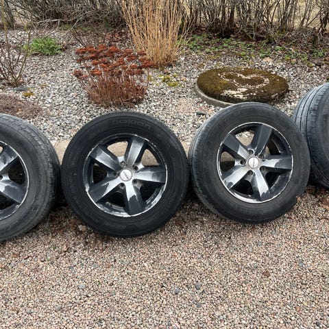 Har suttit på en VW Amarok, mönsterdjupet är fortfarande 5 mm. GRABBER AT-däck från 2017. Avhämtning i Floda.