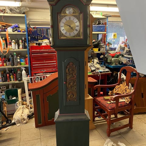 Moraklocka - Golvklocka i trä med rosmålning