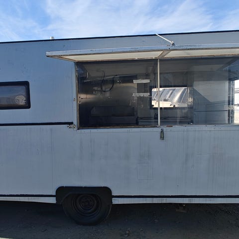 Matvagn perfekt för mobil försäljning av street food eller som fisk/chark-bil. Vagnen har en sida som öppnas upp för servering samt bakre ingång med dörr. Nyligen städad och uppfräschad och går att använda direkt.
