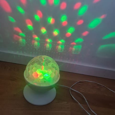 Inbyggd motor och led-belysning, så bara att plugga in och börja festen…