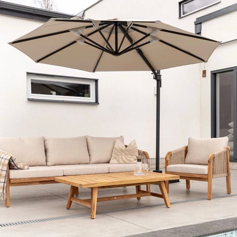 Överdrag till parasoll från Mio i beige-grå färg, höjd ca 250 cm.