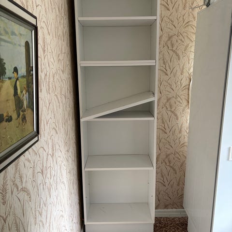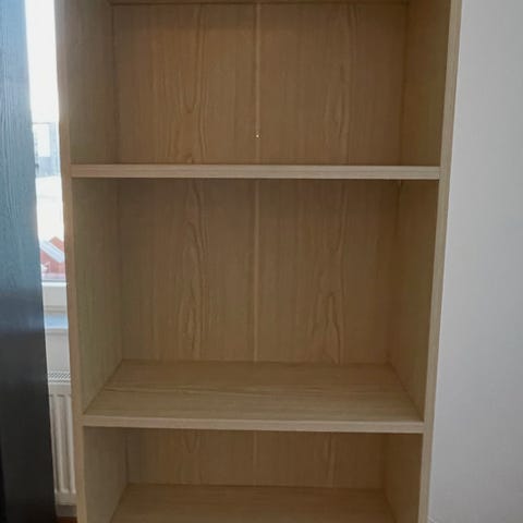 Skänker bort en praktisk hylla i bra skick. Ett hyllplan är borttaget för att ge plats åt högre föremål, vilket gör hyllan extra flexibel beroende på vad du vill förvara. Går utmärkt att använda som den är.