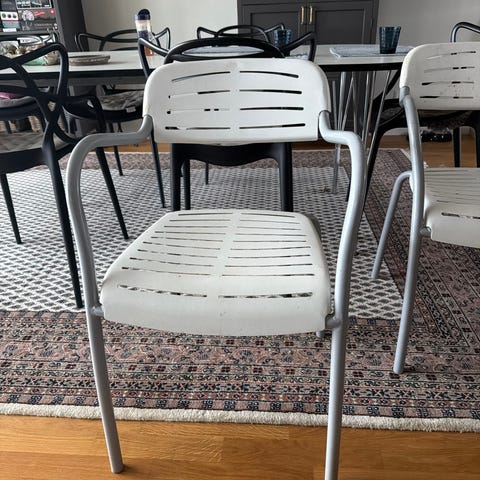 Trät är med andra ord friskt men skulle må bra av en enkel inoljning. Tyget är väderslitet men håller gör vikt. Ett ryggstöd har hål, se bild.