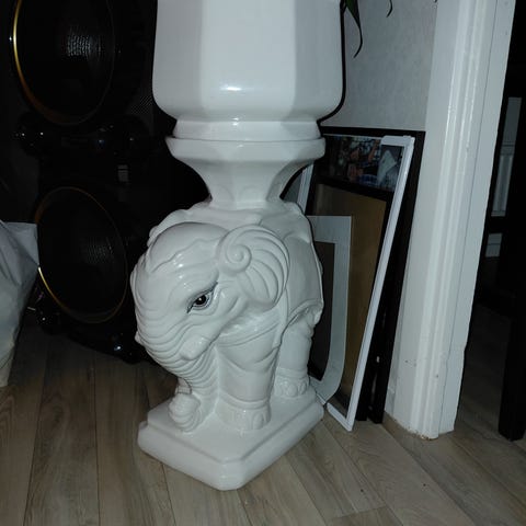 Gammal vit porslins pidestal inkl stor kruka. 83 hög