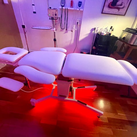 Vit kosmetikstol behandlingsbänk med justerbar rygg och benstöd