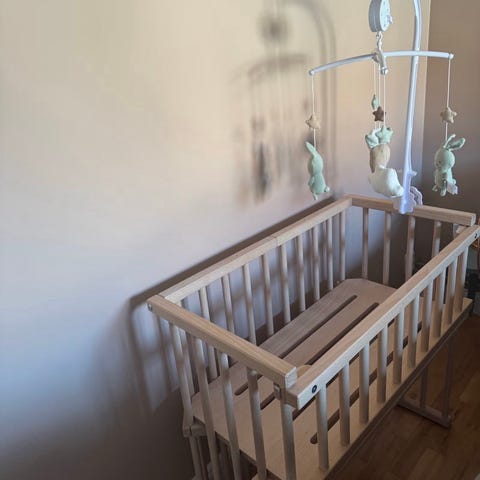 Medföljer mjukt sängskydd och speldosa/mobil.