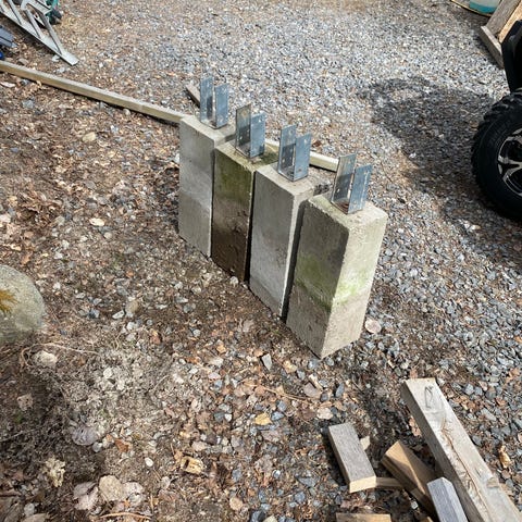 Tryckimpregnerade träreglar från Polimex, märkta D45-0603 24 mm NTR-A. Bra som byggmaterial, bitarna är redan kapade i vinkel.
